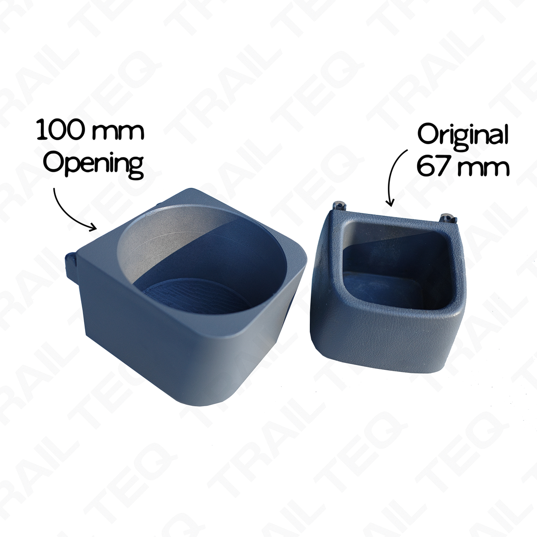 Upgrade your 80 Series interior with one of our hand crafted, colour matched centre console side bottle holders. This replaces OEM part number 58825-60010 (OEM 67 mm version) with a 100 mm replacement version, and is designed mainly for large drink bottles such as the Frank Green or Yeti 1L.