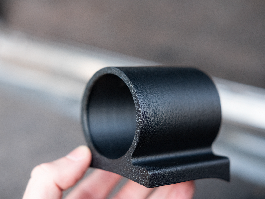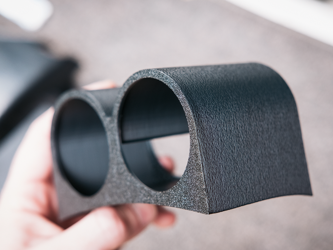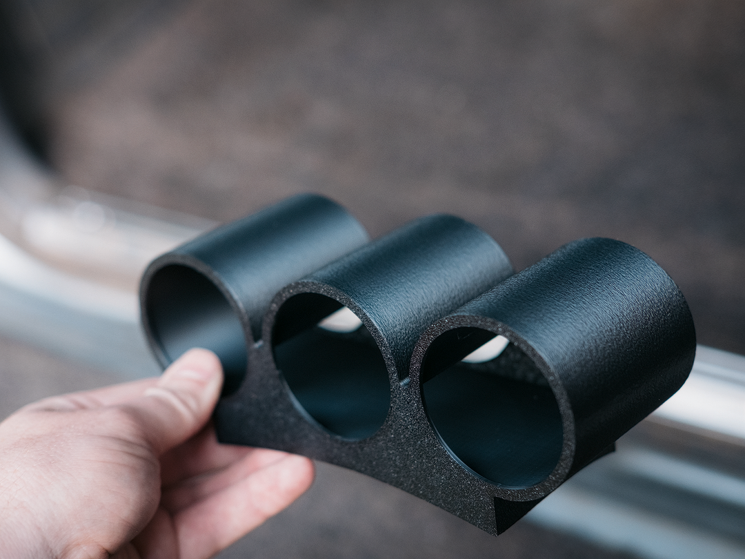 Our gauge holders are available in raw textured satin black, or painted with elastomeric trim paint, which is a special flexible paint suitable for use on plastic interior pieces. Colour matched versions have a finer more subtle texture.